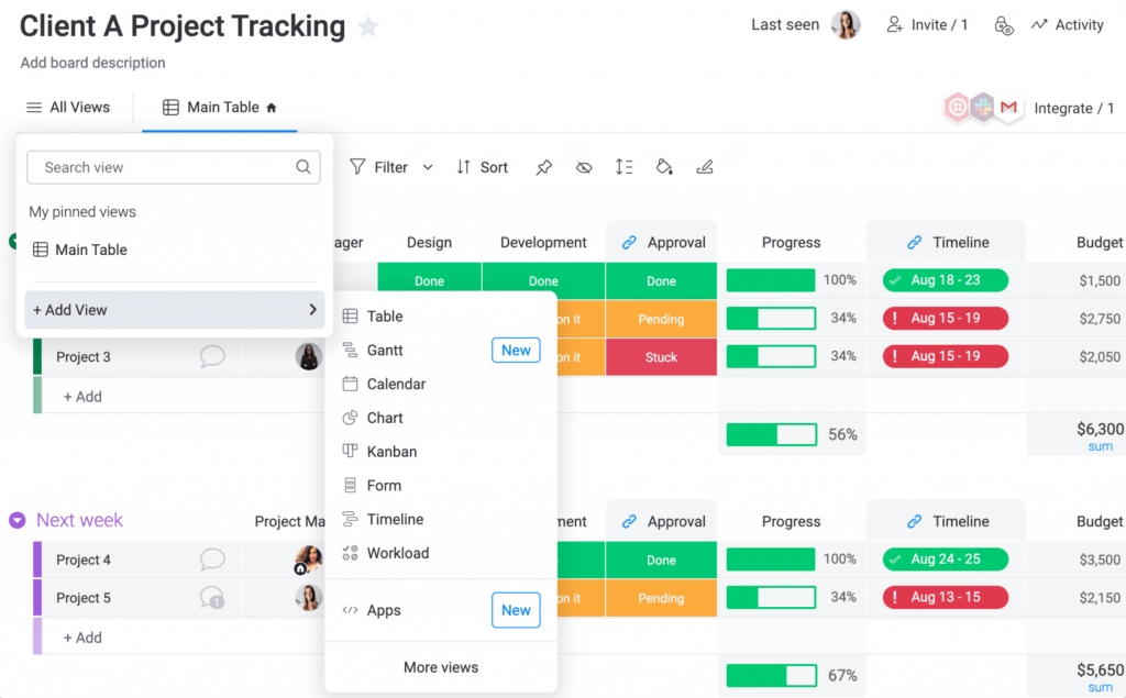 - Multiple project views (Kanban, Gantt, List, Calendar) help manage deadlines, progress, and dependencies visually